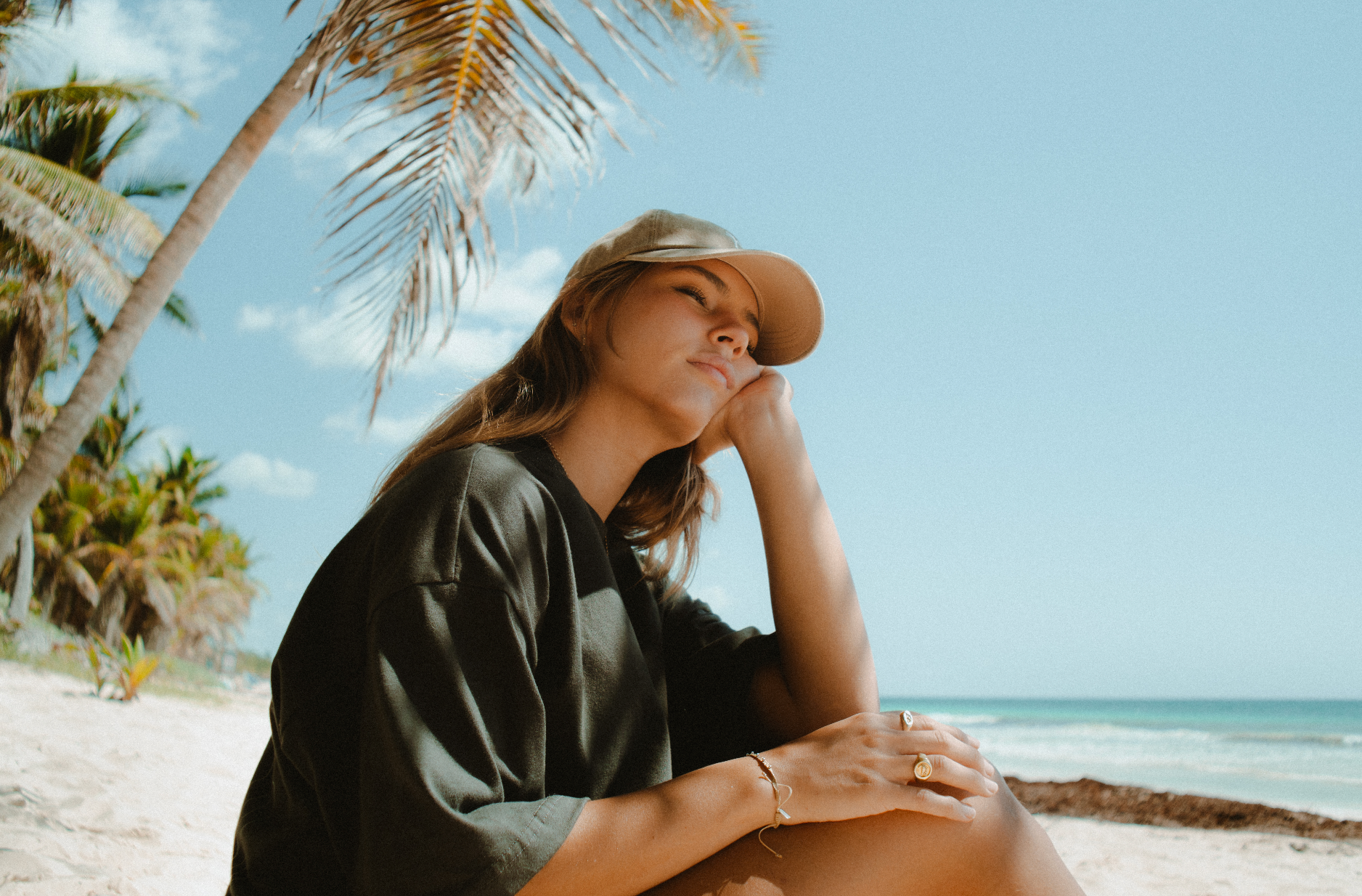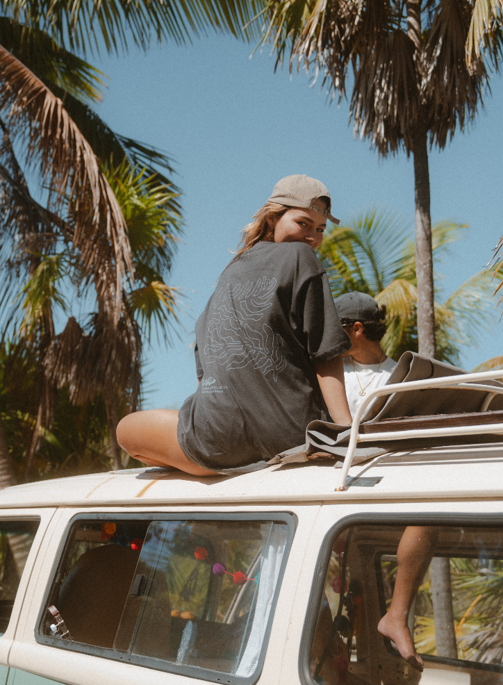 En el frente: la palma de PURE: un emblema silencioso de libertad, sombra y movimiento.