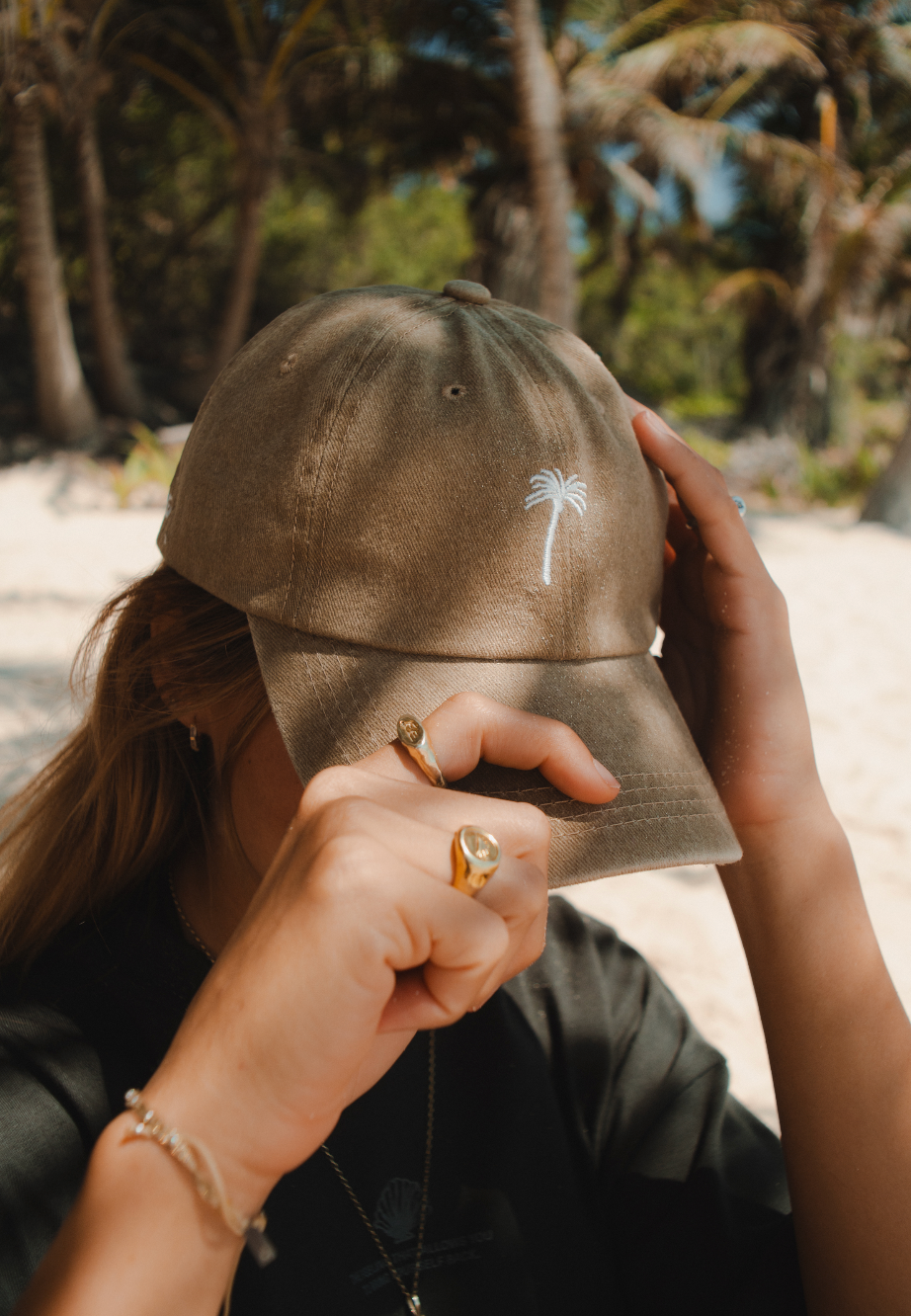 • Detalles bordados: nuestra palma y el nombre de PURE, cosidos tono sobre tono