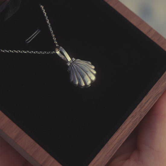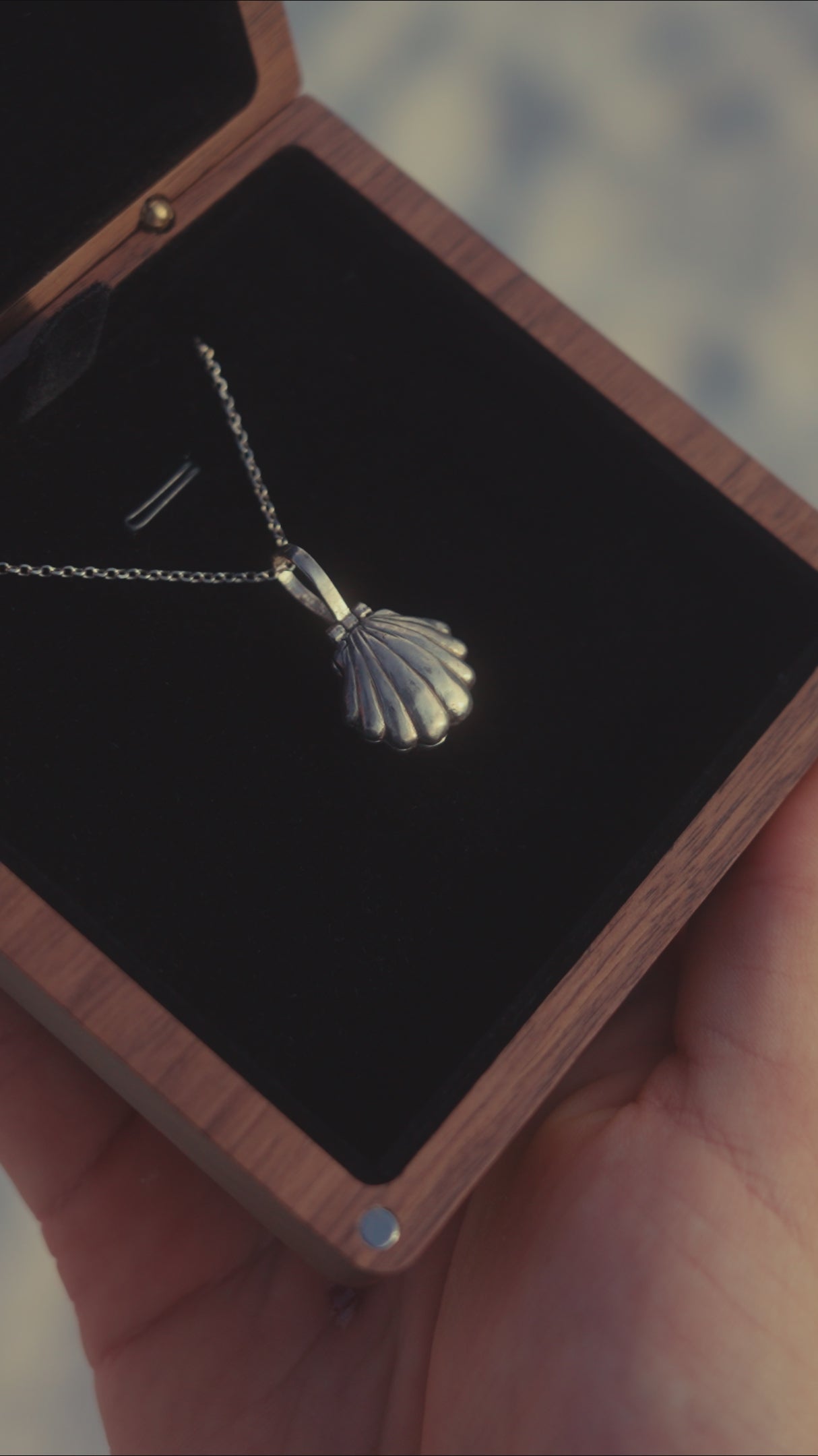 • La concha con bisagra se abre para revelar una perla en el interior.